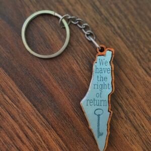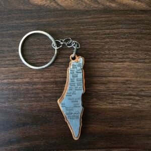 JOD 10Handcrafted keychain made from Palestinian olive wood and recycled tear gas canisters. Made in Aida Refugee Camp.