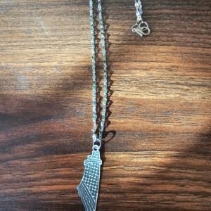 Handcrafted necklace made from recycled tear gas canisters, created in Aida Refugee Camp
