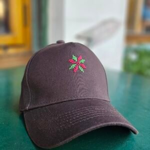 A brown cap hand-embroidered with a traditional Palestinian small kanaan star motif. Crafted in Bethlehem, this piece blends everyday style with the authenticity of heritage, carrying the spirit of Palestinian tatreez in a modern look.