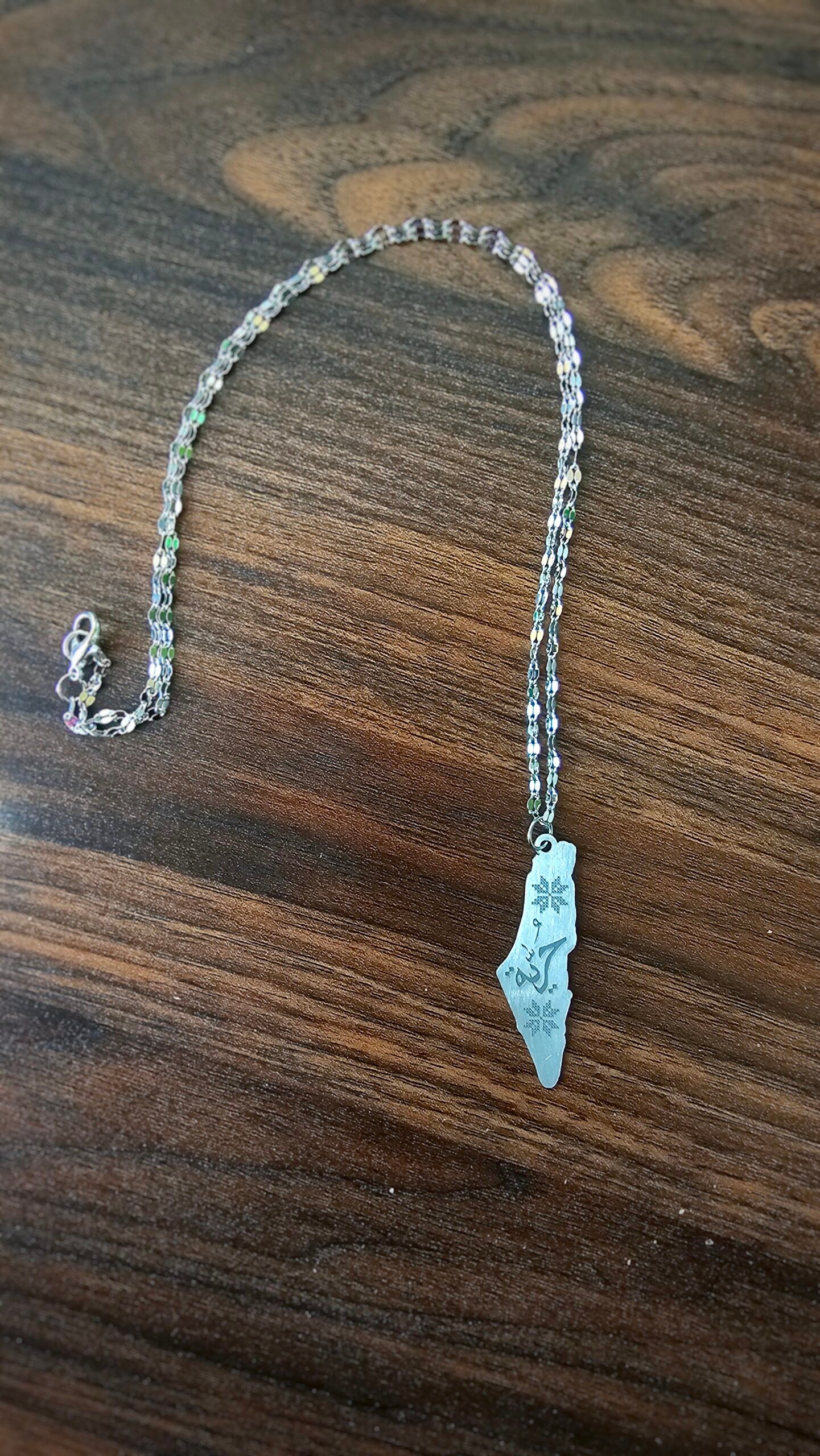 Handcrafted necklace made from recycled tear gas canisters, created in Aida Refugee Camp